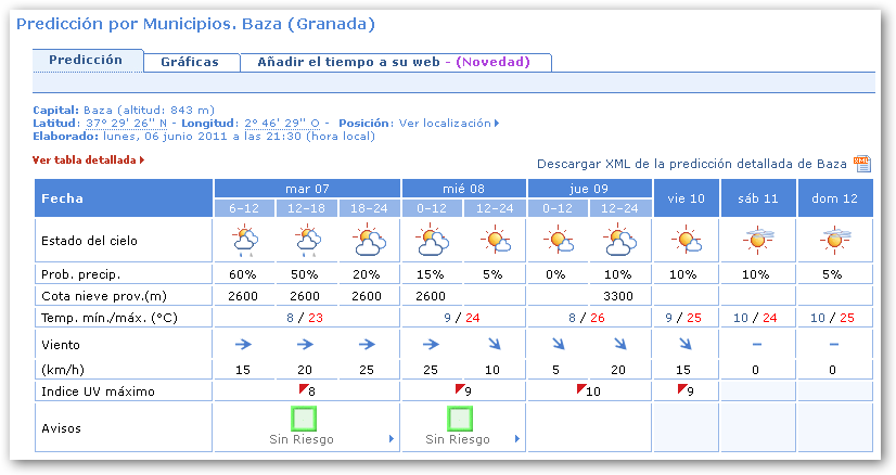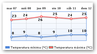 Intervalos nubosos en el litoral y cielos nubosos en el interior, con chubascos localmente moderados y ocasioanlmente tormentosos, que podrían ser localmente fuertes en el interior, siendo menos probables e intensos en el litoral. Temperaturas sin cambios o en ligero descenso. Vientos de componente Oeste, flojos a moderados en el interior y moderados aumentando a fuertes en el litoral.