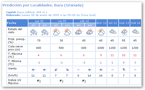 Nuboso tendiendo a muy nuboso a lo largo del día. Precipitaciones débiles localmente moderadas en el sur a primeras horas extendiéndose a lo largo del día. La cota de nieve se situará sobre los 400m. Temperaturas nocturnas en ligero a moderado descenso, con heladas moderadas durante la madrugada en zonas del interior, y diurnas en ligero descenso. Vientos flojos variables en el interior, con predominio de la componente norte, y de componente este, flojos a moderados en el litoral.