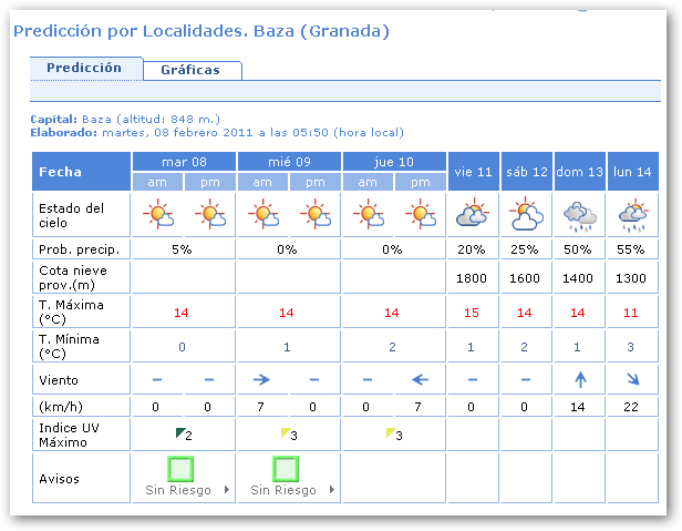 Temperatura mínima: -2ºC.