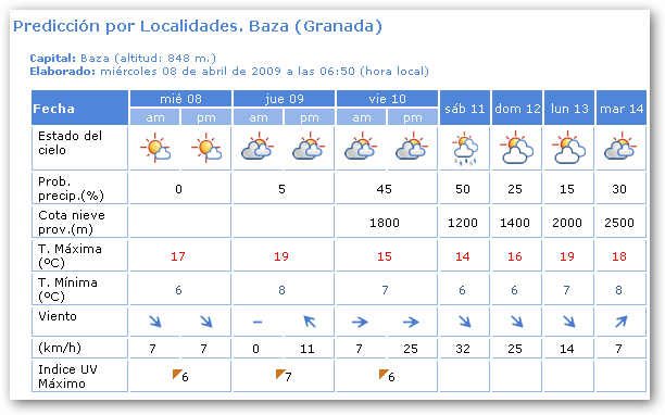 Cielos poco nubosos, con intervalos nubosos de nubes altas. Temperaturas máximas en ligero ascenso. Vientos variables flojos en el interior y de componente Oeste flojos en el litoral girando al final a componente este.