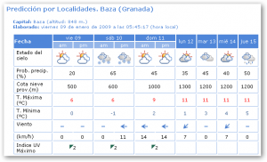 Nuboso con posibilidad de chubascos débiles, más probables en la franja litoral en la primera mitad del día, donde podrían ser localmente moderados, disminuyendo a intervalos nubosos por la tarde. La cota de nieve estará situada entre 400-600m. Temperaturas nocturans sin cambios, con heladas localmente moderadas en puntos del interior, y diurnas en ligero ascenso. Vientos flojos variabales, con intervalos de componente oeste moderados en el litoral.