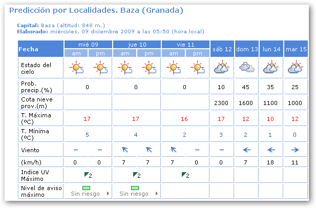 Cielos nubosos en el interior a primeras horas, tendiendo a poco nuboso; en el litoral, poco nuboso con intervalos de nubes bajas al final del día. Brumas y bancos de nuebla matinales en el interior. Temperaturas sin cambios significativos. Vientos flojos variables, girando por la tarde a componente Este en el litoral.