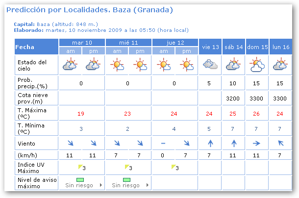 Poco nuboso, con algún intervalo de nubes altas durante la tarde en la mitad oriental. Temperaturas en ligero a moderado ascenso. Vientos de componente Norte flojos a moderados, tendiendo a componente Oeste a lo largo del día.