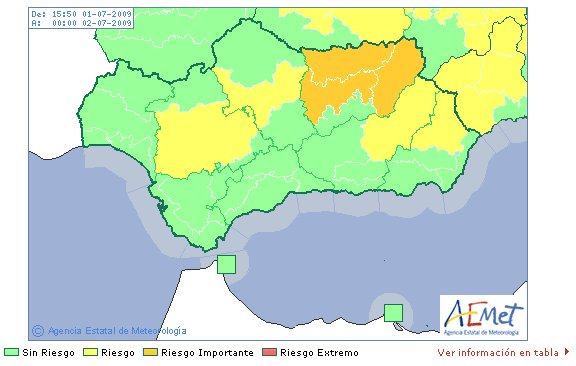Nivel de Alerta: Amarillo, Riesgo Bajo. No existe riesgo meteorológico para la población en general aunque sí para alguna actividad concreta. Este nivel no genera ningún aviso pero hace una llamada para que se esté atento a la predicción meteorológica en vigor.