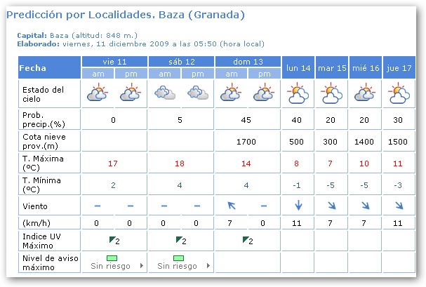 Intervalos nubosos en el litoral; poco nuboso o despejado en el Interior. Brumas y bancos de niebla matinales. Temperaturas sin cambios. Vientos varibles flojos en en el interior, y de componente Este flojos a moderados en el litoral, tendiendo a variables flojos durante la tarde.