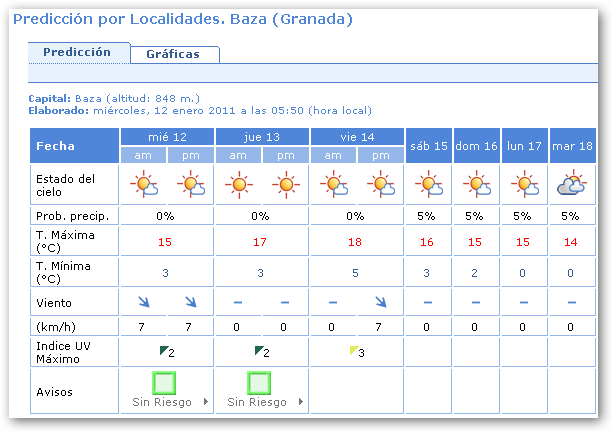 Poco nuboso con intervalos nubosos matinales en el interior; de nubes altas durante la tarde. Brumas y posibles bancos de nieblas matinales en el interior. Temperaturas sin cambios o en ligero ascenso. Vientos de componente Norte en el interior, flojos a moderados, y flojos variables en el litoral.