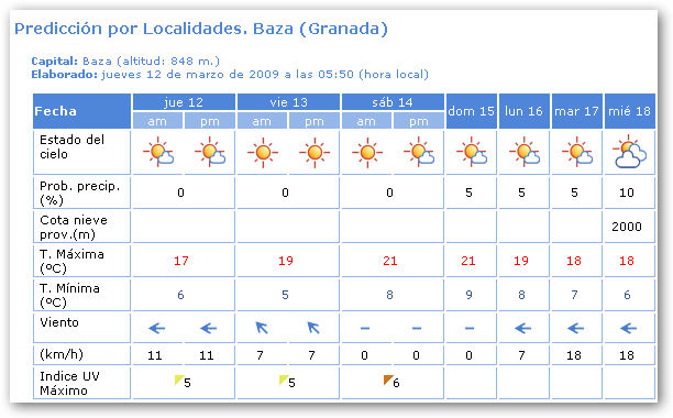 Cielos poco nuboso o despejados, con algún intervalo nuboso en el litoral. Brumas matinales coseras y posibilidad de bancos de niebla matinales en el interior. Temperaturas nocturnas sin cambios; diurnas en ligero descenso. Vientos de componente este flojos aumentando a moderados en el litoral.