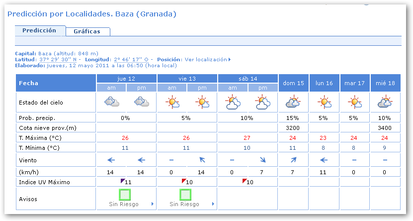 Intervalos de cielos nubosos con predominio de nubes medias y altas, y nubosidad de evolución por la tarde; probabilidad de chubascos débiles o localmente moderados en las sierras del Norte. Temperaturas sin cambios. Vientos de componente Este, flojos en el interior y moderados en el litoral, con intervalos de fuertes.