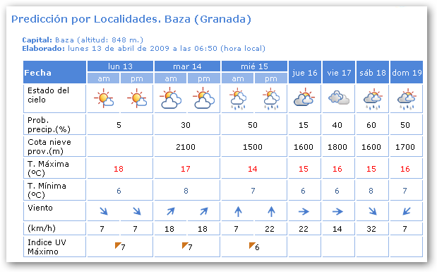 Cielos poco nubosos o despejados, con intervalos de nubes altas por la tarde. Temperaturas mínimas sin cambios o en ligero ascenso; máximas en ligero a moderado ascenso. Vientos flojos, variables girando por la tarde a componente oeste en el interior, de componente oeste con intervalos de moderados por la tarde, en el litoral.
