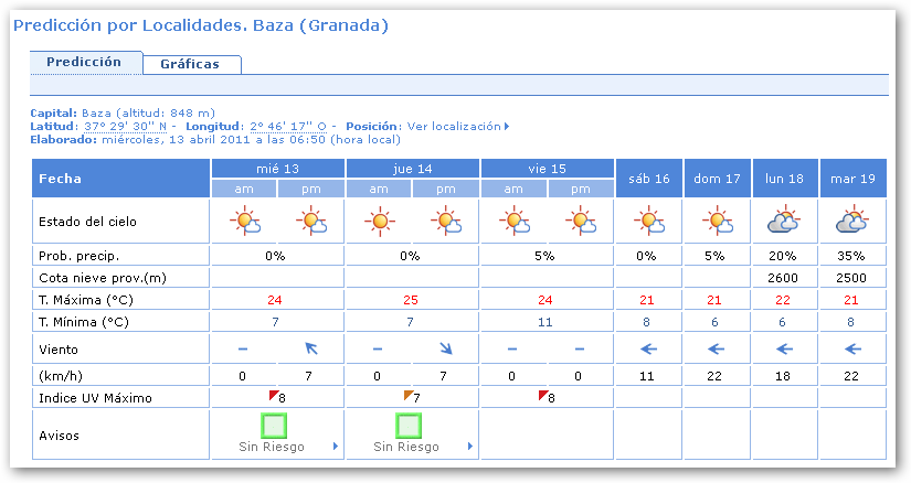 Cielos poco nubosos o despejados. Temperaturas diurnas en ligero ascenso. Vientos de compoente Este, flojos en el interior y moderados en el litoral.