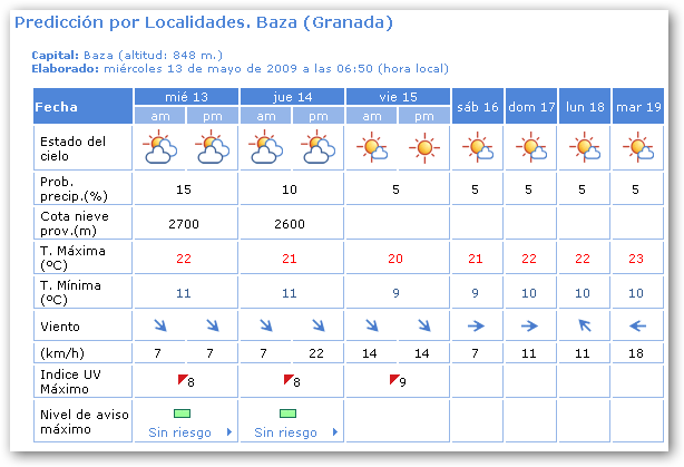 Intervalos nubosos en el interior de nubes medias y altas, y poco nubosos en el resto. Nubosidad de evolución durante la tarde con probabilidad de chubascos en las comarcas del nordeste, ocasionalmente acompañados de tormenta. Temperaturas diurnas en ligero descenso y nocturans sin cambios. Vientos de componente oeste; flojos en el interior y moderados aumentando durante la tarde a fuertes en el litoral.