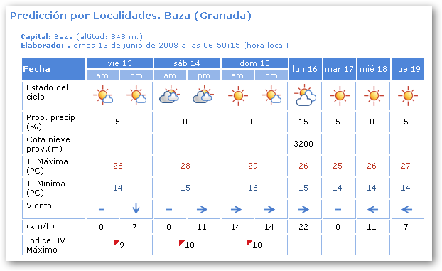 Previsión para la provincia de Granada según la Agencia Estatal de Meteorología: