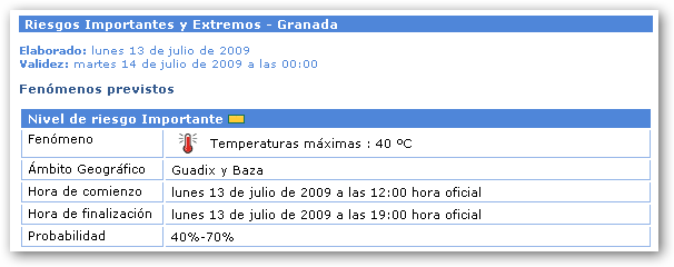 Nivel de Alerta: Naranja, Riesgo Importante. Existe un riesgo meteorológico importante.