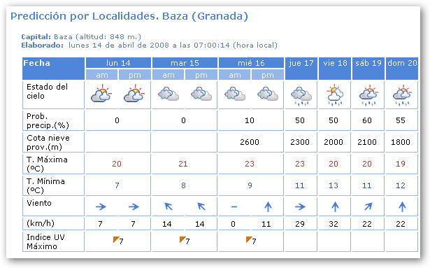 La previsión meteorológica según la Agencia Estatal de Meteorología, para la provincia de Granada es la siguiente: