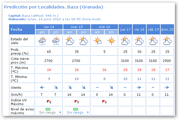 Cielos nubosos en las comarcas nororientales, con chubascos localmente moderados a primeras horas, que podrían ir acompañados de tormenta; nubosidad de evolución durante la tarde en el resto con probabilidad de chubascos, mas probables e intensos en el interior y en zonas de sierra. Temperaturas diurnas en ligero ascenso, localmente moderado en puntos del interior. Vientos variables flojos, tendiendo a partir del mediodía a componente Oeste, y aumentando a moderados en el litoral.