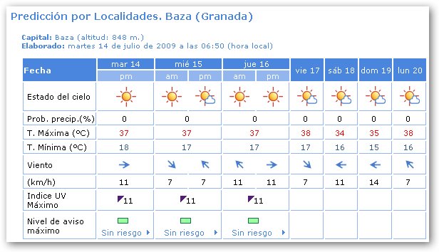 Cielos con intervalos de nubes medias y altas durante la mañana y nubosidad de evolución en las sierras más orientales por la tarde. Posibilidad de chubascos dispersos, más probables por la tarde en las sierras orientales, cuando irían ocasionalmente acompañados de tormentas. Temperaturas en ligero a moderado descenso. Vientos de componente oeste, flojos en el interior con intervalos de moderados; y moderados con intervalos fuertes en el litoral.