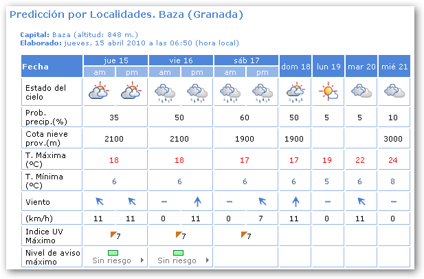 Cielos nubosos a muy nubosos con chubascos localmente moderados, ocasionalmente acompañados de tormenta, tendiendo a disminuir durante la tarde en el litoral. Temperaturas sin cambios. Vientos de componente Sur en el interior, flojos a moderados; y de componente Este moderados en el litoral con intervalos fuertes al principio.
