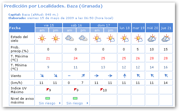 Cielos poco nubosos o despejados. Temperaturas mínimas en ligero descenso; máximas sin cambios. Vientos del noroeste flojos a moderados en el interior; de componente oeste moderados, con intervalos fuertes al principio, en el litoral.