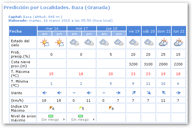 Poco nuboso aumentando la nubosidad de tipo alto a lo largo del día. Posibilidad de brumas y bancos de niebla aislados en zonas del interior.Temperaturas en ligero a moderado ascenso. En el interior, vientos flojos predominando la componente Este. En el litoral, vientos de componente Este fuertes disminuyendo a moderados.