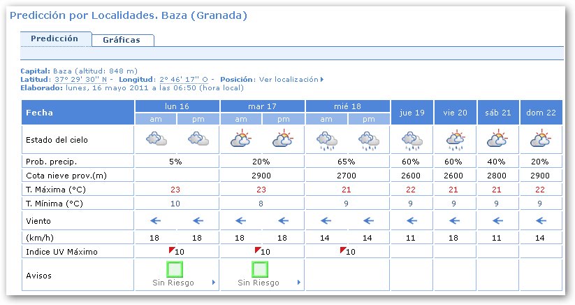 Intervalos de cielos nubosos con probabilidad de chubascos débiles y dispersos. Temperaturas mínimas sin cambios o en ligero descenso y máximas sin cambios. Vientos de componente Este; flojos en el interior y moderados en el litoral con intervalos fuertes.