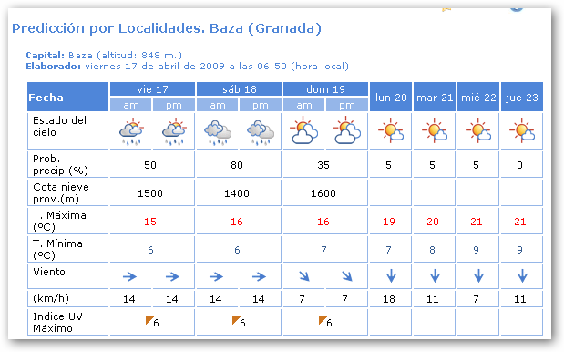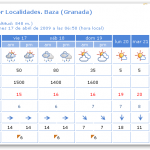Aumento de la nubosidad durante el día hasta cielos muy nubosos con chubascos, moderados en las comarcas occidentales y débiles o localmente moderados en el resto, que podrían ir acompañados de tormentas, menos probables e intensos en el extremo oriental. Cota de nieve en 1600m temperaturas sin cambios o diurnas en ligero ascenso. Vientos de componente oeste, flojos a moderados en el interior y moderados en el litoral.