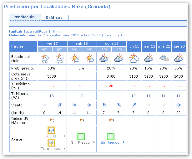 Cielos nubosos o muy nubosos, con chubascos moderados ocasionalmente acompañados de tormentas, y que pueden ser localmente fuertes o muy fuertes más probables la primera mitad del día. Temperaturas en ligero a moderado descenso. Vientos flojos variables girando y aumentando por la mañana a Oeste o Suroeste moderados.