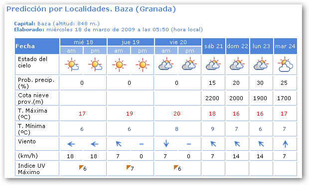 Intervalos nubosos en el litoral tendiendo a poco nuboso. Poco nuboso o despejado en el interior. Temperaturas sin cambios o en ligero ascenso. Viento de componente Este; moderados en el interior, y fuertes en el litoral.