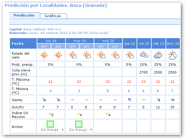 Poco nuboso o despejado. Temperaturas diurnas sin cambios o en ligero descenso. Vientos flojos; de componente Norte en el interior y de componente Este en el litoral, con intervalos moderados por la mañana.