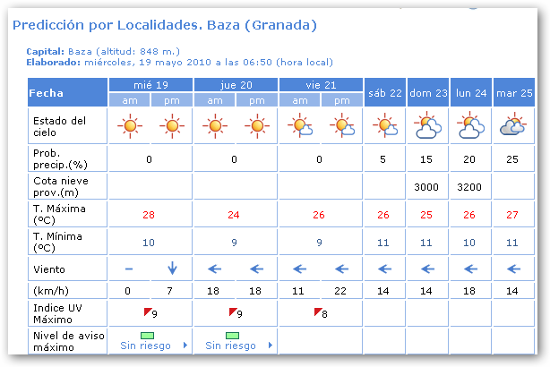 Cielos poco nubosos o despejados. Temperaturas en ligero ascenso. Vientos de componente Este flojos.