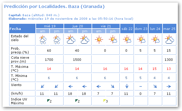 Intervalos nubosos con posibilidad de chubascos débiles y dispersos en los sistemas montañosos. Temperaturas mínimas sin cambios y máximas en ligero descenso. Vientos de componente Este, flojos en el interior y flojos a moderados en el litoral.
