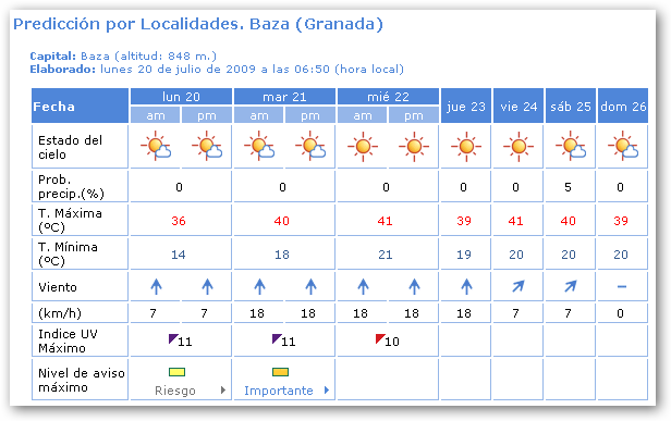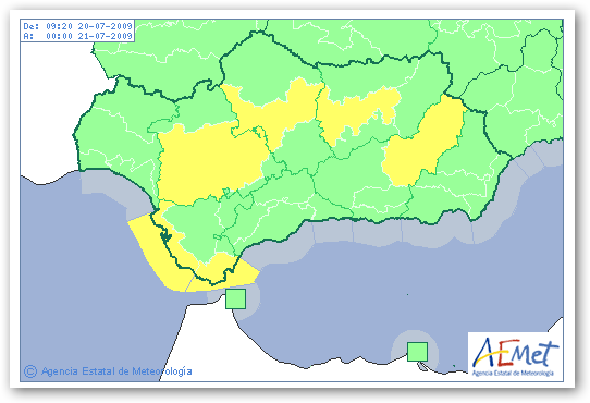 Nivel de Alerta: Amarillo, Riesgo Bajo. No existe riesgo meteorológico para la población en general aunque sí para alguna actividad concreta. Este nivel no genera ningún aviso pero hace una llamada para que se esté atento a la predicción meteorológica en vigor.