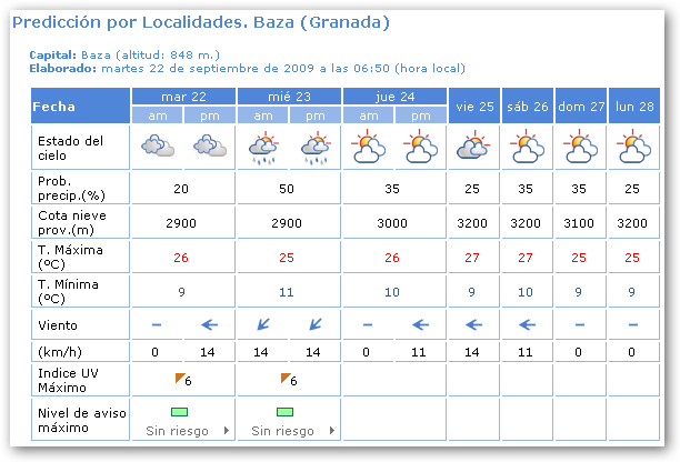 Poco nuboso con nubosidad de evolución en las sierras orientales, donde hay posibilidad de chubascos, más probables a partir de la tarde. Temperaturas sin cambios o en ligero descenso. Vientos de componente Este, flojos en el interior y flojos a moderados en el litoral.