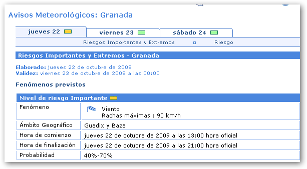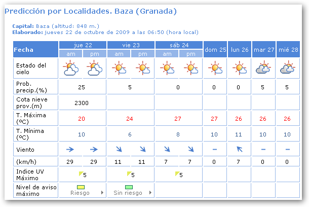 Cielos nubosos a muy nubosos con precipitaciones débiles a moderadas, menos probables hacia el litoral y en las comarcas más orientales, tendiendo a disminuir durante la tarde. Temperaturas en ligero ascenso, o mínimas sin cambios. Vientos del Oeste o Sureste moderados, con intervalos de fuertes en el interior, o muy fuerte en zonas altas y fuertes con intervalos de muy fuerte en el litoral. Tendiendo a disminuir al final.