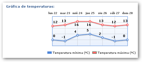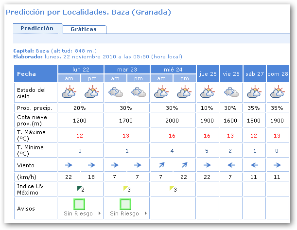 Intervalos de cielos nubosos en el interior con posibilidad de precipitaciones débiles y dispersas; serán de nieve en cotas superiores a 1200-1400 m. Tendiendo durante la tarde a poco nubosos; cielos poco nubosos en el litoral. temperaturas sin cambios. Vientos de componente Oeste; flojos a moderados en el interior y moderados en el litoral con algún intervalo fuerte.