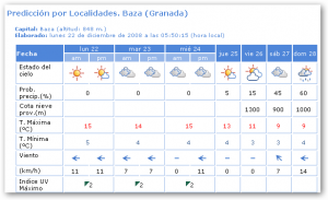 Poco nuboso o despejado. Brumas matinales en el litoral, y posibilidad de bancos de niebla matinales en zonas bajas del interior. Temperaturas mínimas sin cambios o en ligero ascenso, con heladas débiles en puntos del interior, y máximas sin cambios o en liero descenso. Vientos de componente Este; flojos en el interior, y moderados en el litoral.