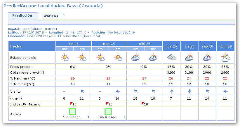 Poco nuboso o despejado, con nubosidad de evolución en las sierras. Temperaturas sin cambios. Vientos de componente Este; flojos en el interior y flojos a moderados en el litoral.