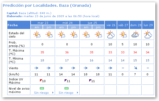 Cielos poco nubosos; Nubosidad de evolución en el interior, con probabilidad de chubascos ocasionalmente acompañados de tormentas en las sierras. Brumas matinales en el litoral. Temperaturas en ligero asceno. Vientos variables flojos tendiendo por la tarde a componente oeste, y aumentando a moderados en el litoral.