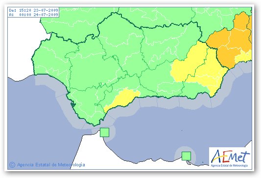 Nivel de Alerta: Amarillo, Riesgo Bajo. No existe riesgo meteorológico para la población en general aunque sí para alguna actividad concreta. Este nivel no genera ningún aviso pero hace una llamada para que se esté atento a la predicción meteorológica en vigor.