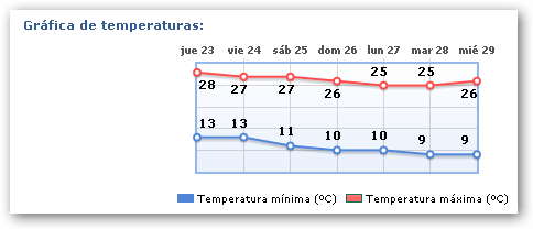 Cielos nubosos o muy nubosos, con predominio de nubes medias y altas con porbabilidad de chubascos localmente moderados. Temperaturas mínimas en ligero ascenso; máximas en ligero descenso. Vientos de componente Oeste flojos con intervalos de moderados en el interior; en el litoral, vientos de componente Este flojos a moderados, girando a componente Oeste por la tarde.