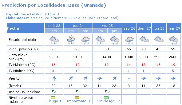 Muy nuboso o cubierto con precipitaciones moderadas y persistentes, que podrían ser localmente fuertes o muy fuertes y acompañadas de tormentas. Temperaturas diurnas sin cambios o en ligero ascenso. Vientos del oeste o suroeste, aumentando a moderados a fuertes con rachas de muy fuertes en cotas altas.