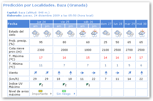 Muy nuboso o cubierto con precipitaciones moderadas y persistentes, localmente fuertes, acompañadas de tormentas en las comarcas occidentales, donde pueden ser muy fuertes, disminuyendo la nubosidad y las precipitaciones durante la tarde. Temperaturas en ascenso, ligero para las máximas y moderado para las mínimas.