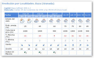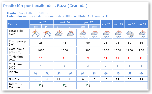 Nuboso en el interior con precipitaciones débiles de nieve en cotas superiores a 1000-1200 mts, tendiendo a poco nuboso durante la tarde; cielos poco nuboso en el litoral, aumentando a intervalos nubosos durante la tarde con posibilidad de precipitaciones débiles. Temperaturas en ligero a moderado descenso, con heladas débiles en puntos del interior. Vientos de componente oeste, flojos a moderados en el interior y moderados a fuertes en el litoral tendiendo a componente norte en el interior, y a componente Este flojos a moderados en el litoral.
