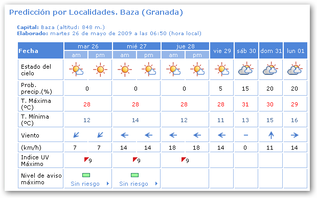 Poco nuboso o despejado. Temperaturas diurnas en ligero a moderado ascenso, nocturnas sin cambios. Vientos de componente norte flojos en el interior y del oeste, girando a este moderado, con rachas fuertes durante el cambio en el litoral.