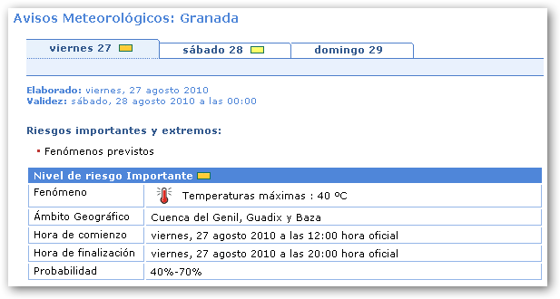Un día más se mantiene activada la alerta por fuertes temperaturas, pudiendo alcanzar valores por encima de los 40ºC.