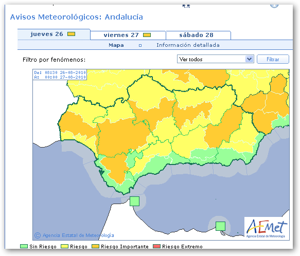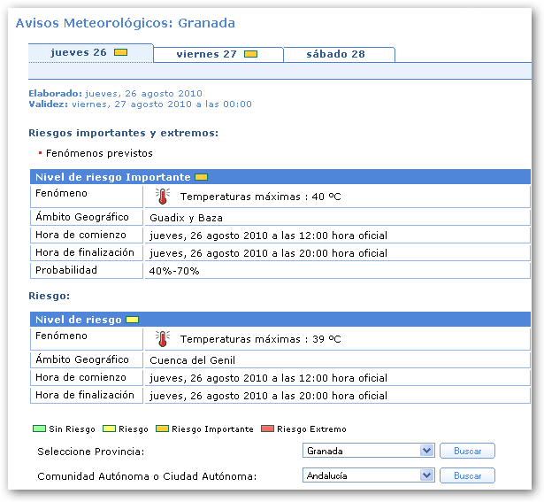 Niveles de alerta amarilla y naranja para la provincia de Granada