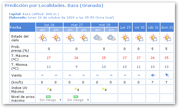 Poco nuboso, con intervalos de nubes altas y nubosidad de evolución en las sierras, e intervalos de nubes bajas matinales en el litoral. Brumas y posibles bancos de niebla. Temperaturas sin cambios. Vientos variables flojos en el interior; de componente Este flojos a moderados en el litoral.