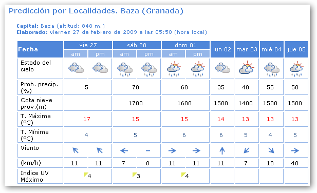 Cielos nubosos predominando la nubosidad media y alta. Brumas, y posibles bancos de niebla matinales. Temperaturas nocturnas sin cambios o en ligero descenso; diurnas en ligero ascenso. Vientos de componente este; flojos a moderados en el interior, y moderados en el litoral, con intervalos de fuertes, tendiendo a disminuir durante la tarde a flojos.