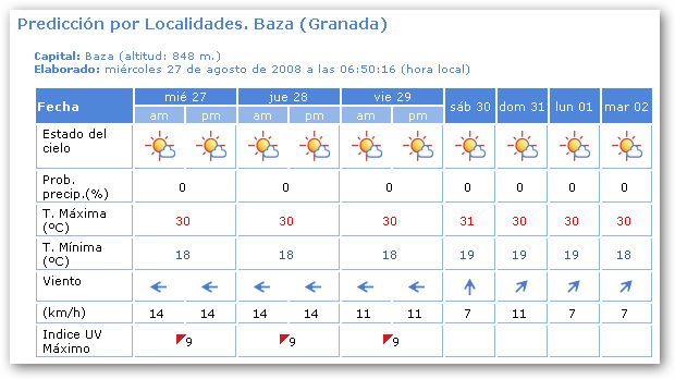 «Cielos poco nubosos, con intervalos nubosos matinales en el litoral y nubosidad de evolución diurna en las sierras. Temperaturas sin cambios, o máximas en ligero descenso. Vientos de componente Este; flojos a moderados en el interior, y moderados en el litoral.