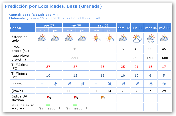 Poco nuboso con intervalos de nubes altas, y nubosidad de evolución en las sierras donde hay posibilidad de agún chubasco débil aislado. Temperaturas sin cambios. Vientos flojos a moderados, de componente Sur en el interior, y de componente Este en el litoral.