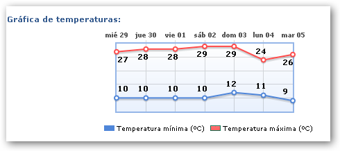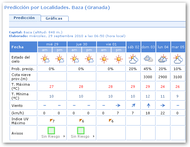 Cielos poco nubosos o despejados con intervalos nubosos de tipo alto. Temperaturas sin cambios o en ligero ascenso. Vientos flojos variables, con predominio de la componente Oeste en el interior.